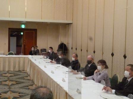 今回は、コロナ感染対策のため、広い会場で臨席者との間にもクリアパネルを設置し、各自マスク着用でのトークであったため、少し窮屈感はありましたが、就職活動に臨む学生達と地元経営者との貴重な意見交換会でした。