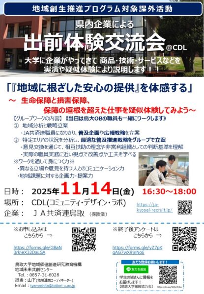 特別インターシップを鳥大生に 出前開催!