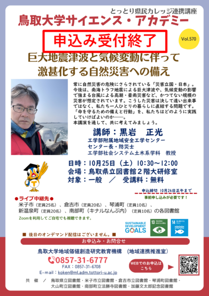 ■申込み受付終了■サイエンス・アカデミーvol.570(巨大地震津波と気候変動に伴って激甚化する自然災害への備え)